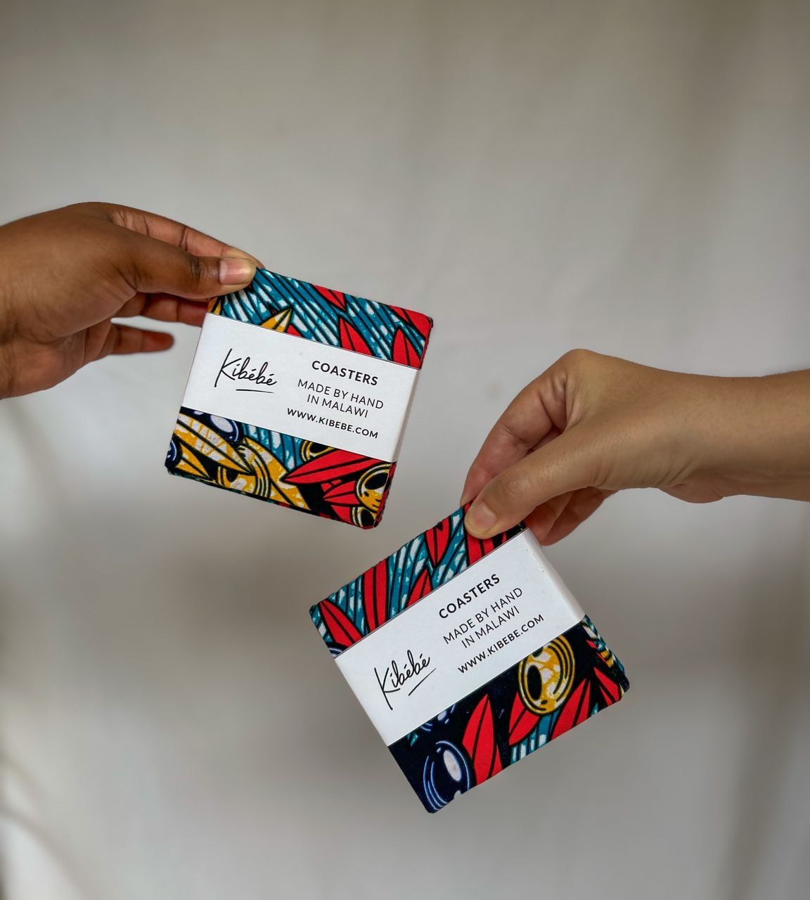 A set of four wooden coasters beautifully covered in Chitenje African Prints and backed with felt. Entirely handmade by artisans living in and around Dzaleka refugee camp, Malawi. The wood is hand cut by Victor (read his story on our blog!) and the customizing is done by artisans who have a disability, or support a family member that has a disability.