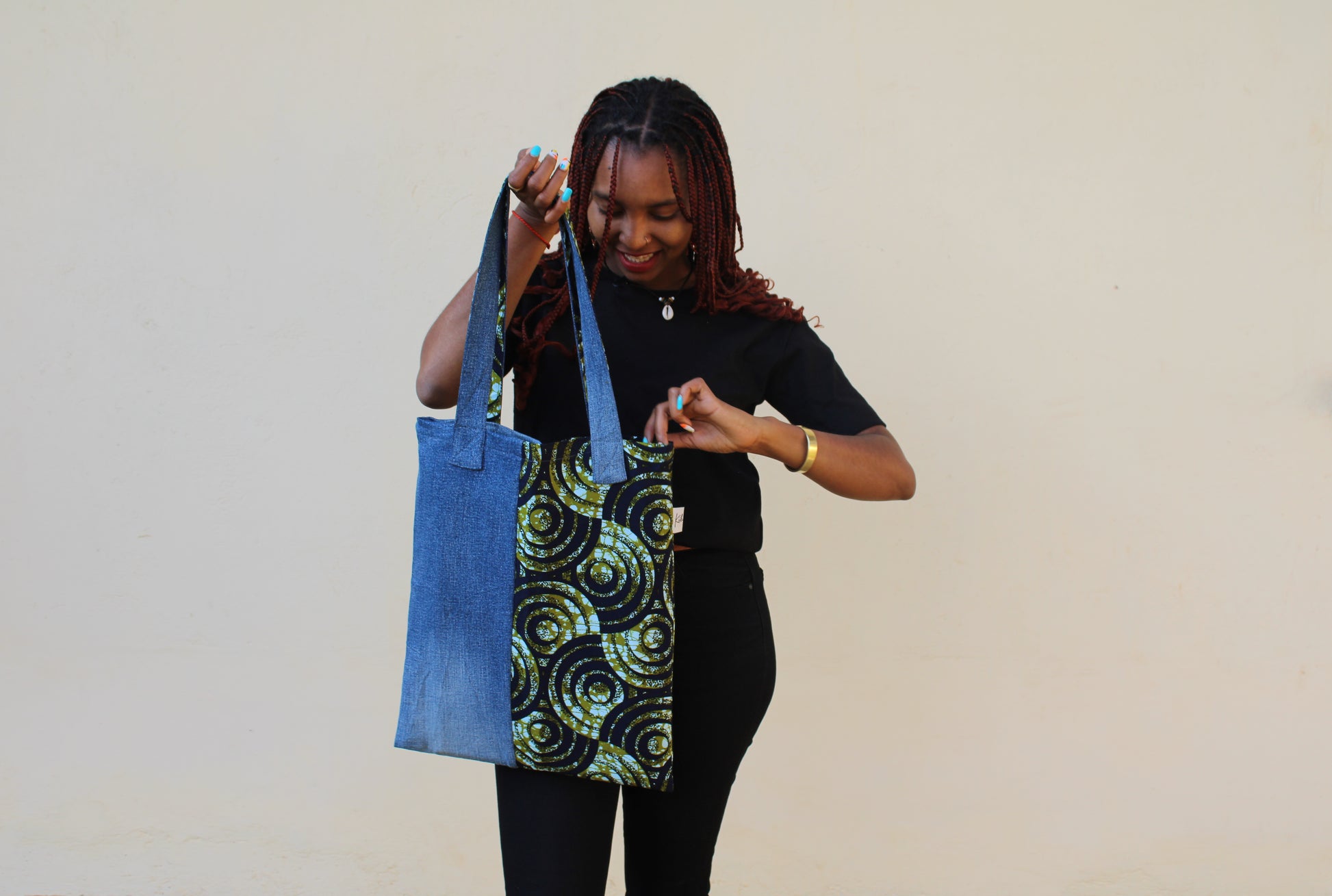 This Denim Tote Bag combines repurposed denim with vibrant chitenje fabric for a stylish and eco-friendly look. Spacious and versatile, it’s perfect for carrying everything from your school books and laptop to groceries and everyday essentials. With its bold colors and sturdy design, this tote is your go-to bag for any occasion.